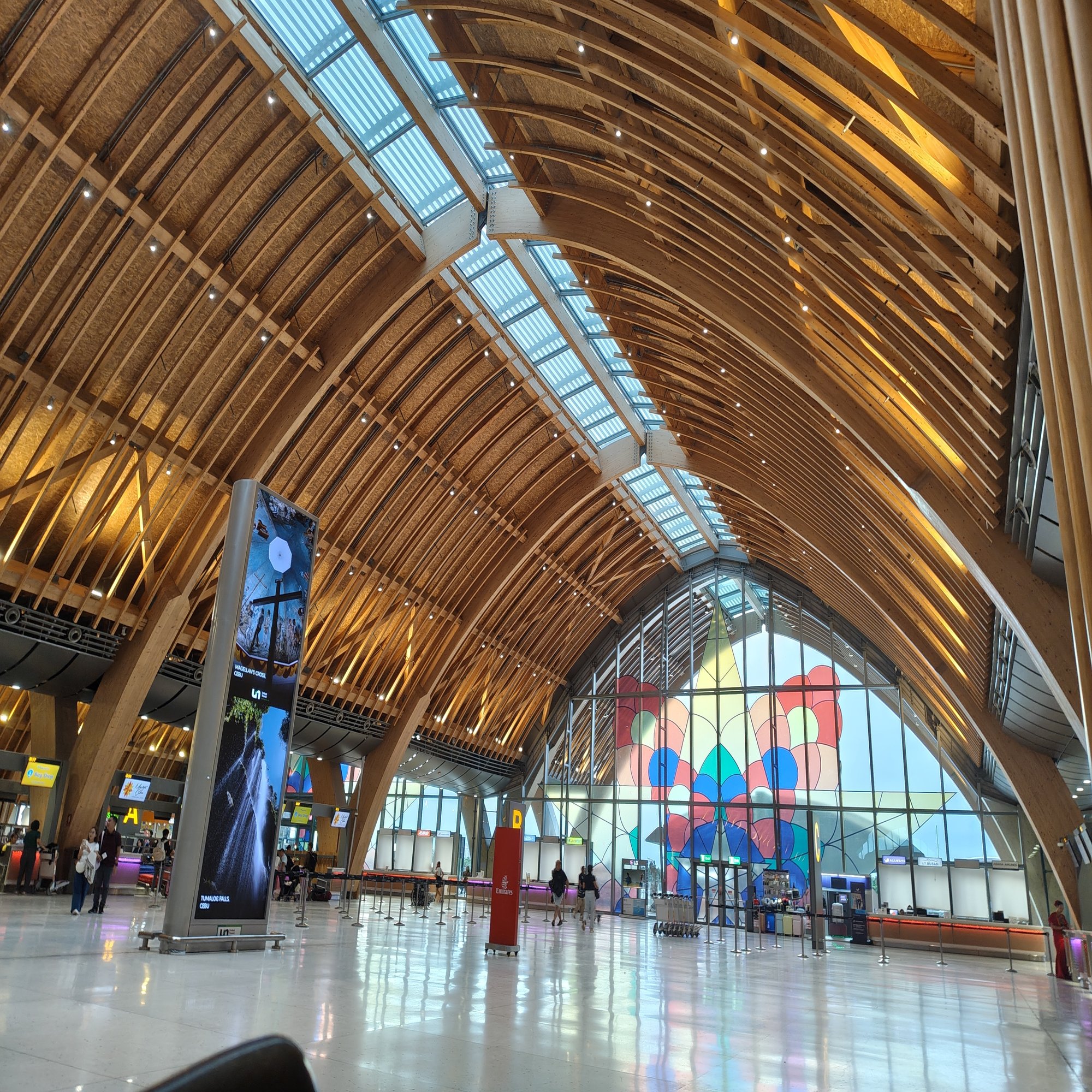 セブの国際線ターミナルは比較的新しく、木製の屋根が印象的で温かみのあるデザイン。